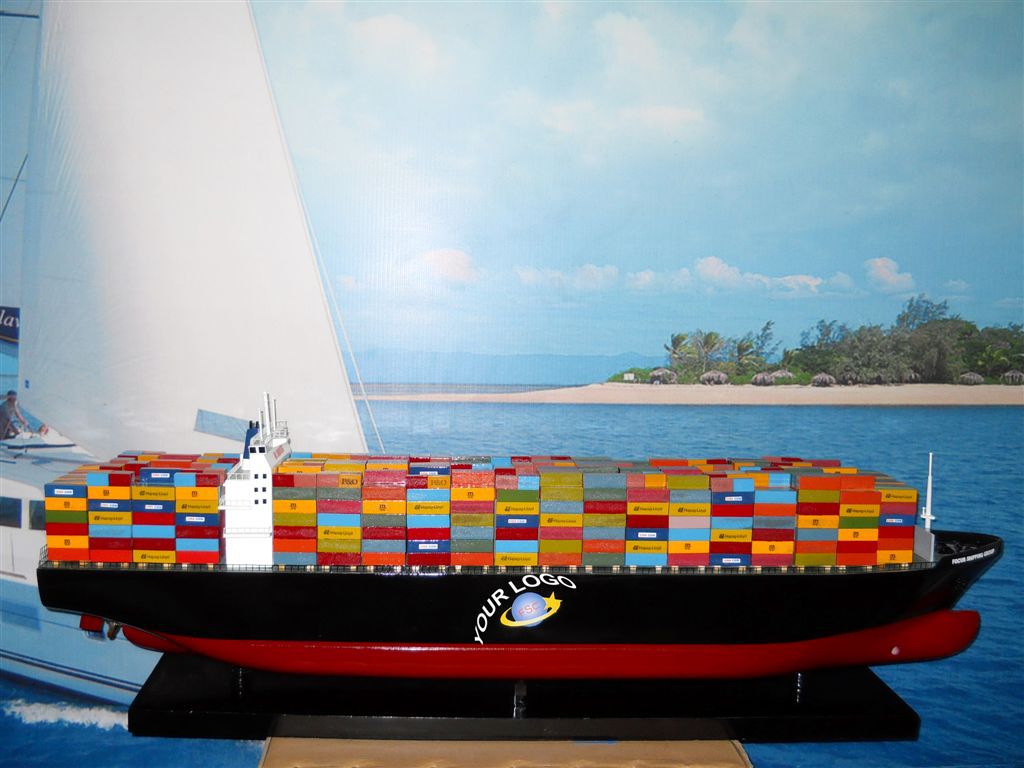 The model of the container carrier you see on the screen is 100 cm long. The materials that are used in the construction of this model container are hand picked and prepared including locally-sourced hardwoods and polished metal fittings. All models are ready to be displayed and come with a wooden base and a brass nameplate. You can display your model in a glass case so that it is protected from dust and the effects of time. Please contact us for more information.