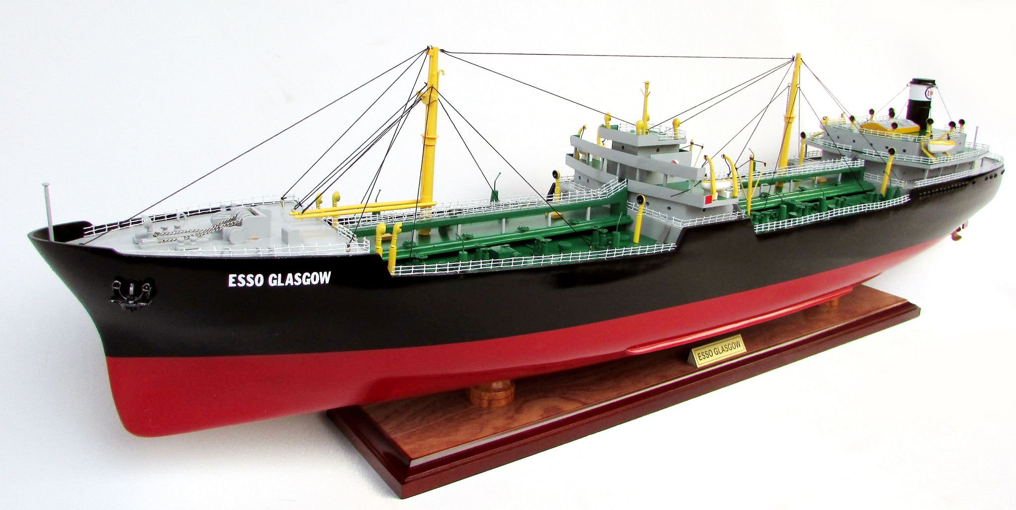 The Esso Glasgow model ship has been scratch-built by the master craftsmen, using her original plan and photographs. The model has been built as accurately as possible, and includes her signature green decking as well as the life boats.