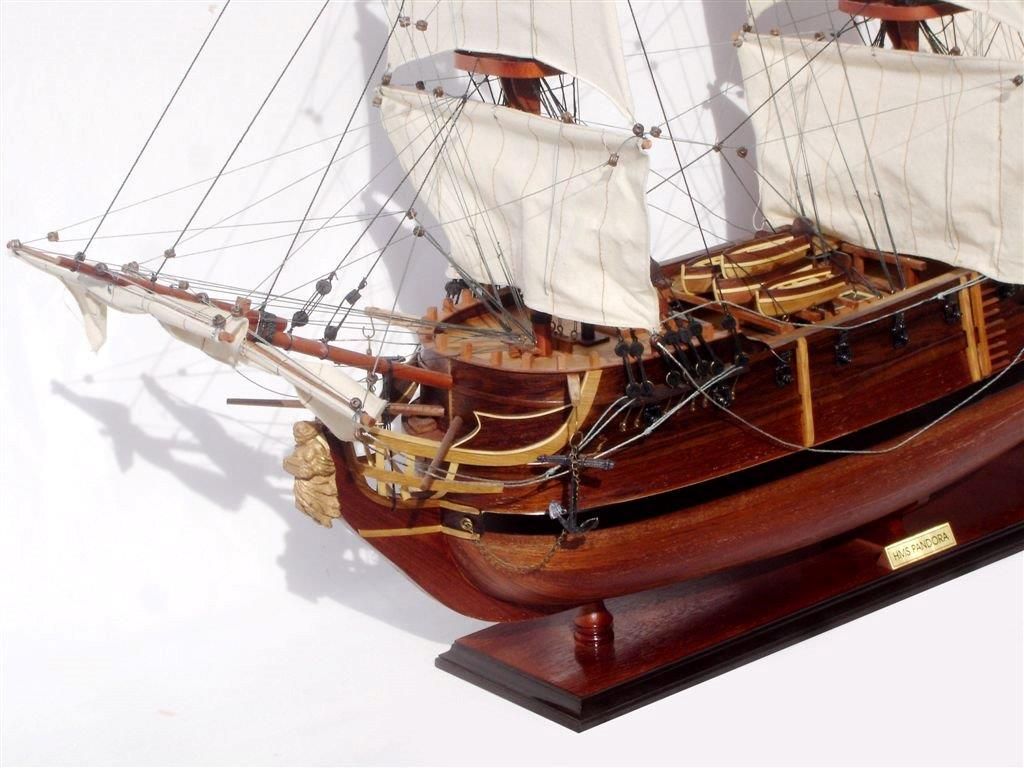 The HMS Pandora Boat model is part of wide range of magnificent models from Ghia Nein offered at Premier Ship Models. Ghia Nein are renowned for their craftsmanship. An artisanal business with over twenty years experience, using locally sourced exotic woods and resources to produce exquisite hand crafted models. Based in Vietnam this family artisanal workshop ensures that each model is of high quality and are accurate replicas of original ships. Â Get this wonderful model of the HMS Pandora Boat today, to sit proudly as feature in any room.