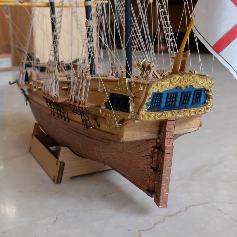 This is a fine model of a typical light frigate built in Britain in the early 1700s. These ships were very fast and manoeuvrable and helped to give English supremecy of the seas during these troubled times.