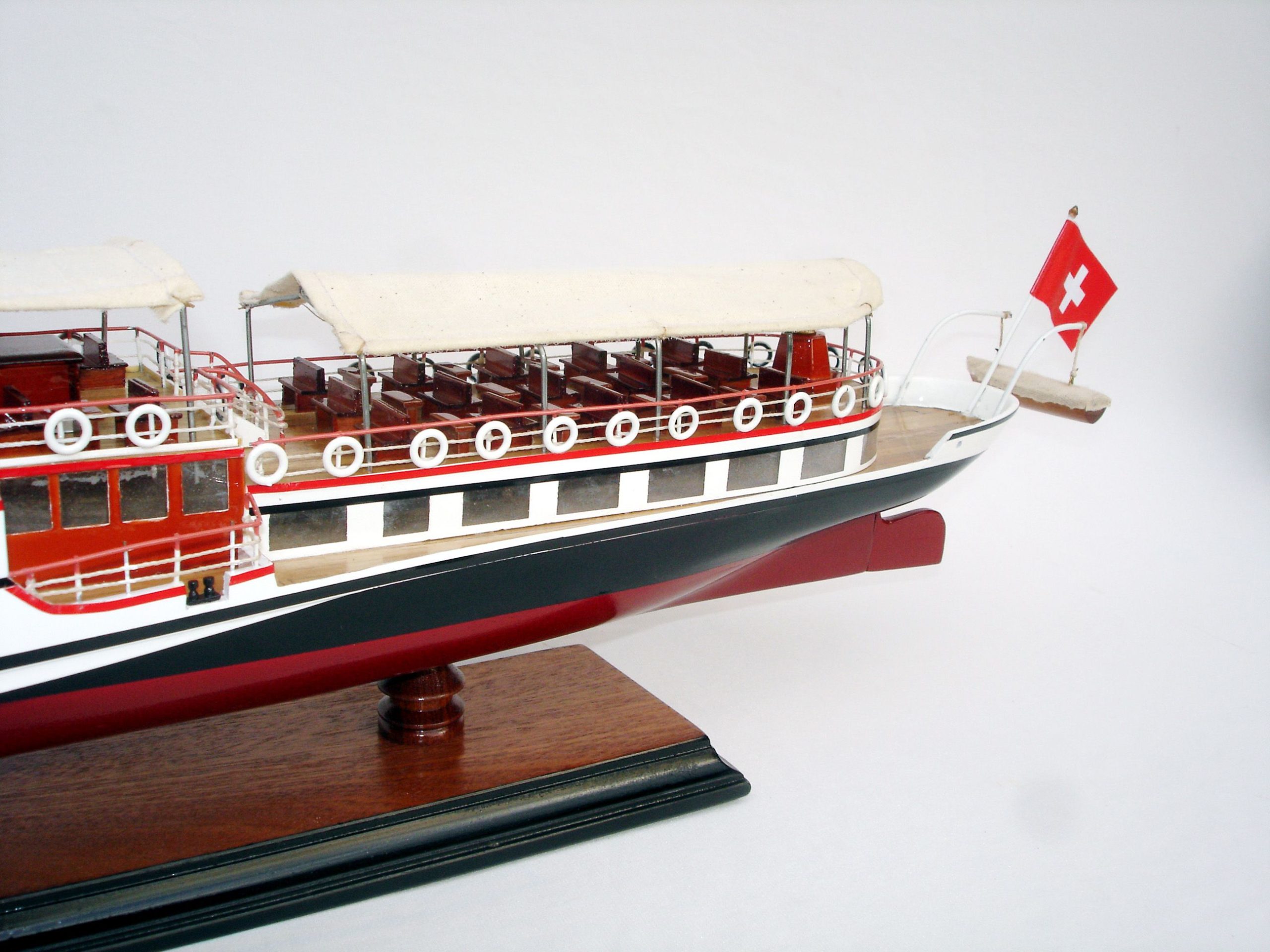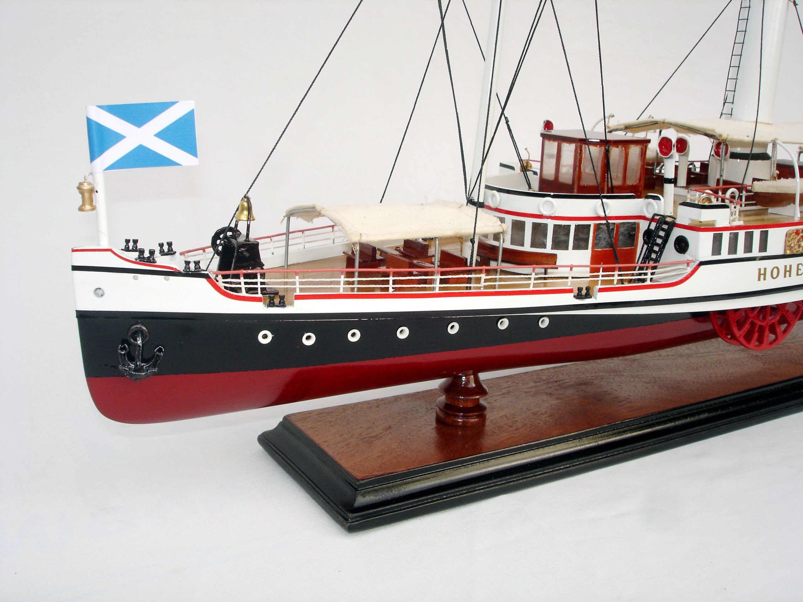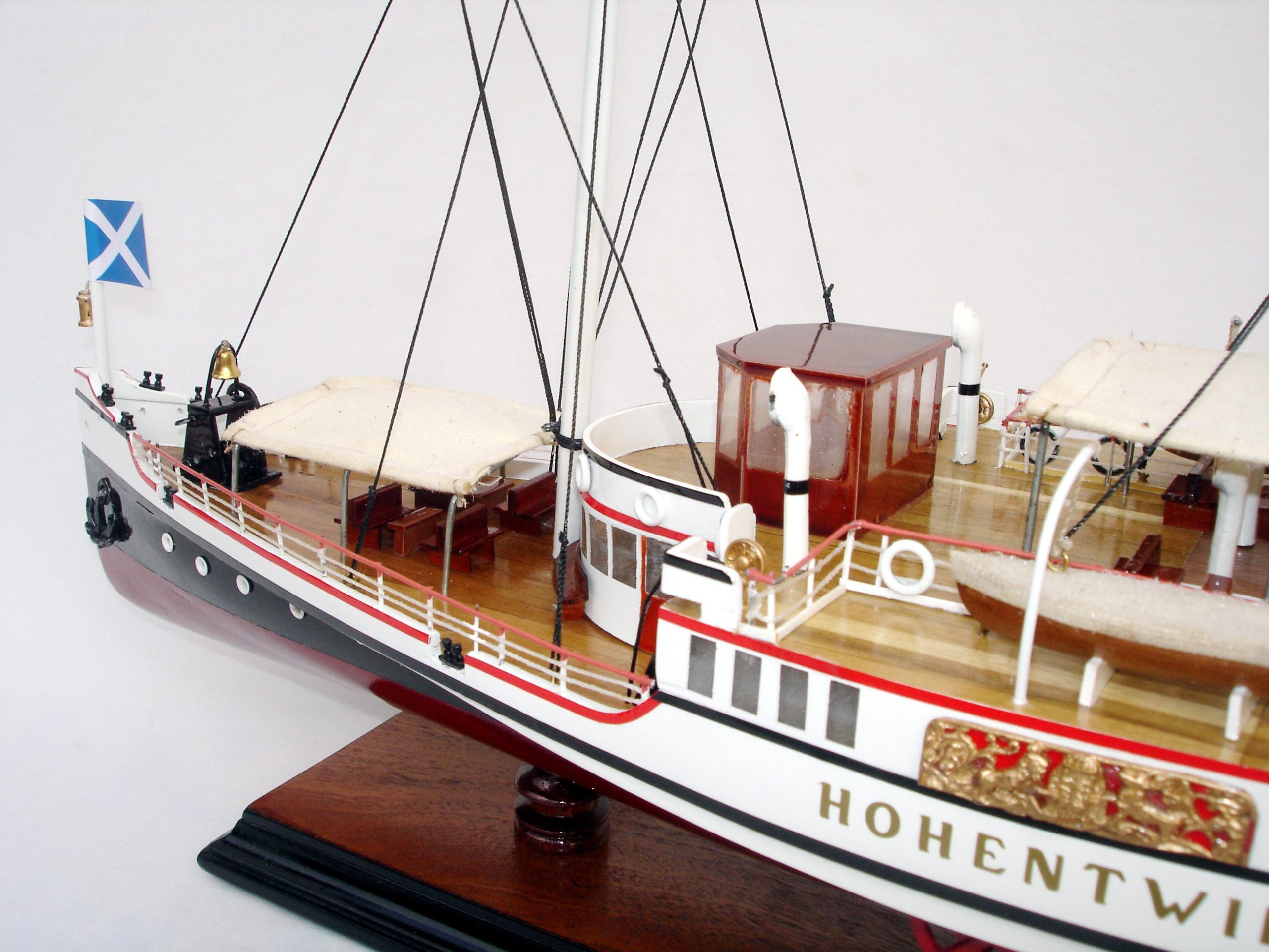 The Hohentwiel model ship has been constructed in great detail and is mounted on a solid wooden base with brass name plate. This traditional model steam ship would make a stunning addition to any space.