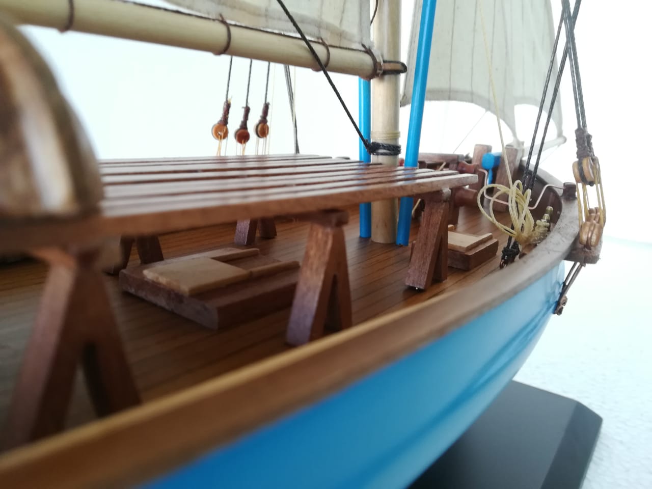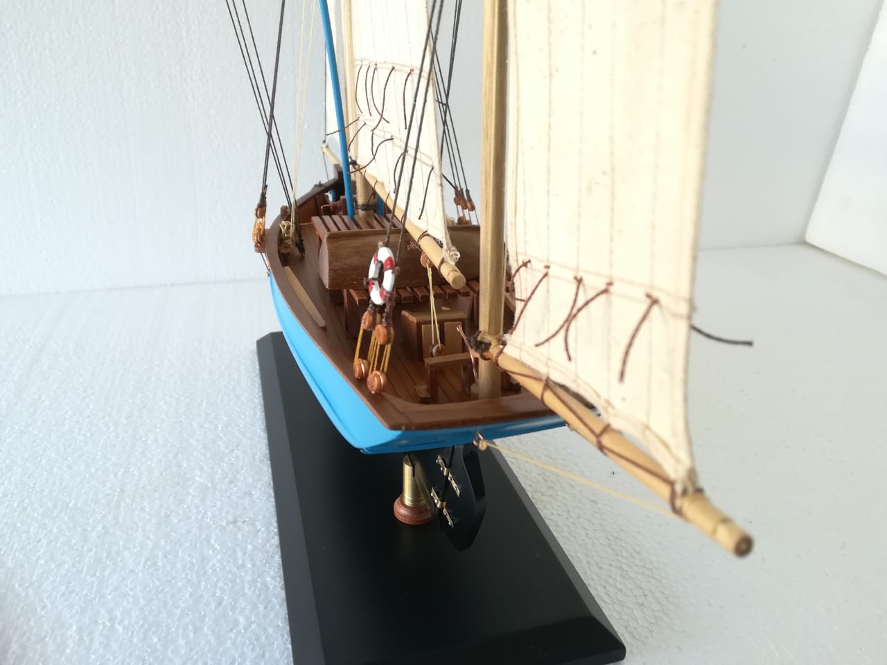 This Model boat comes flat packed with instructions for Mast & Sails to be assemble only. This is a classical Tuna fishing vessel, which made its appearance in the fishing ports of La Rochelle and Sables d’Olonne on the Bay of Biscay. Eighteen eighty-three was a terrible year for the fishing fleet with frequent Atlantic storms, causing the loss of both ships and lives of hard working touch French fishermen.