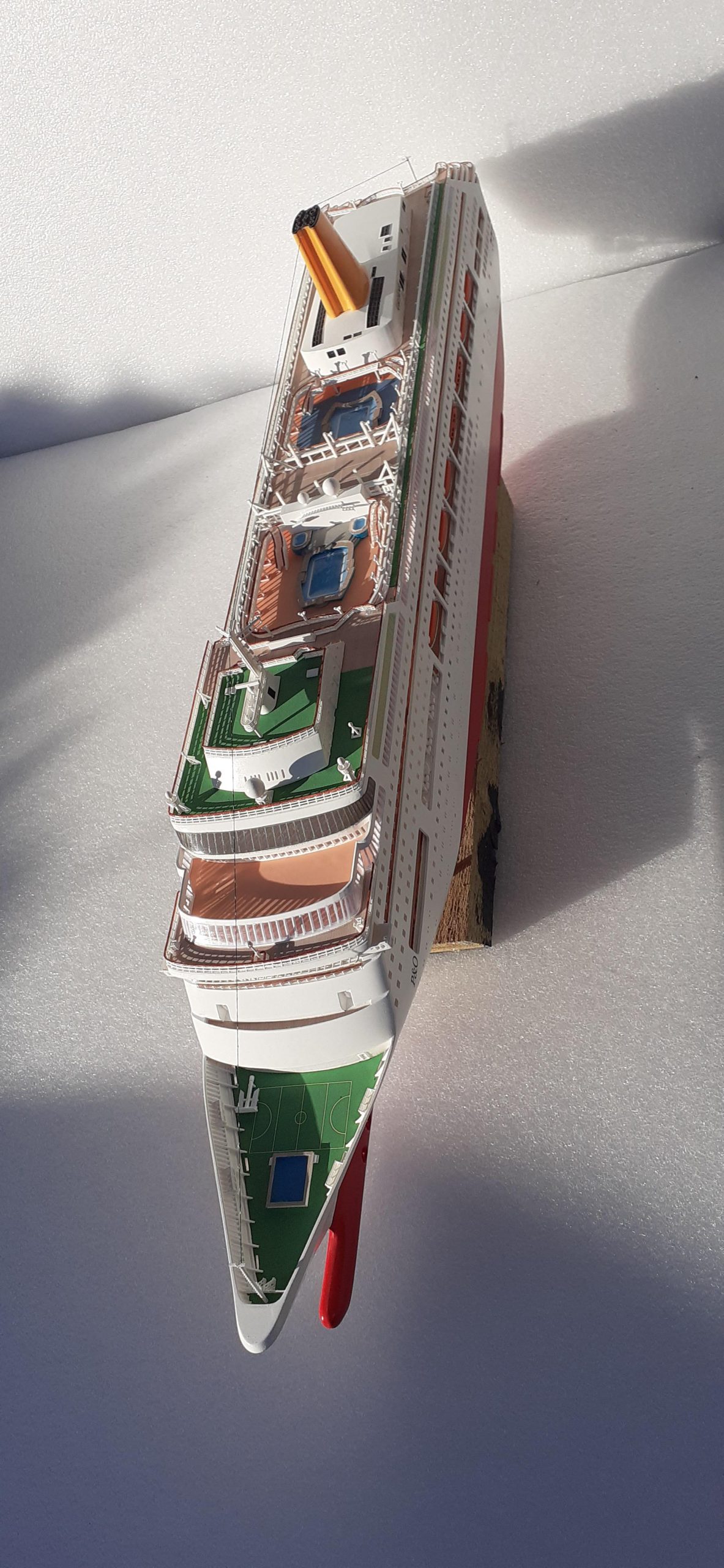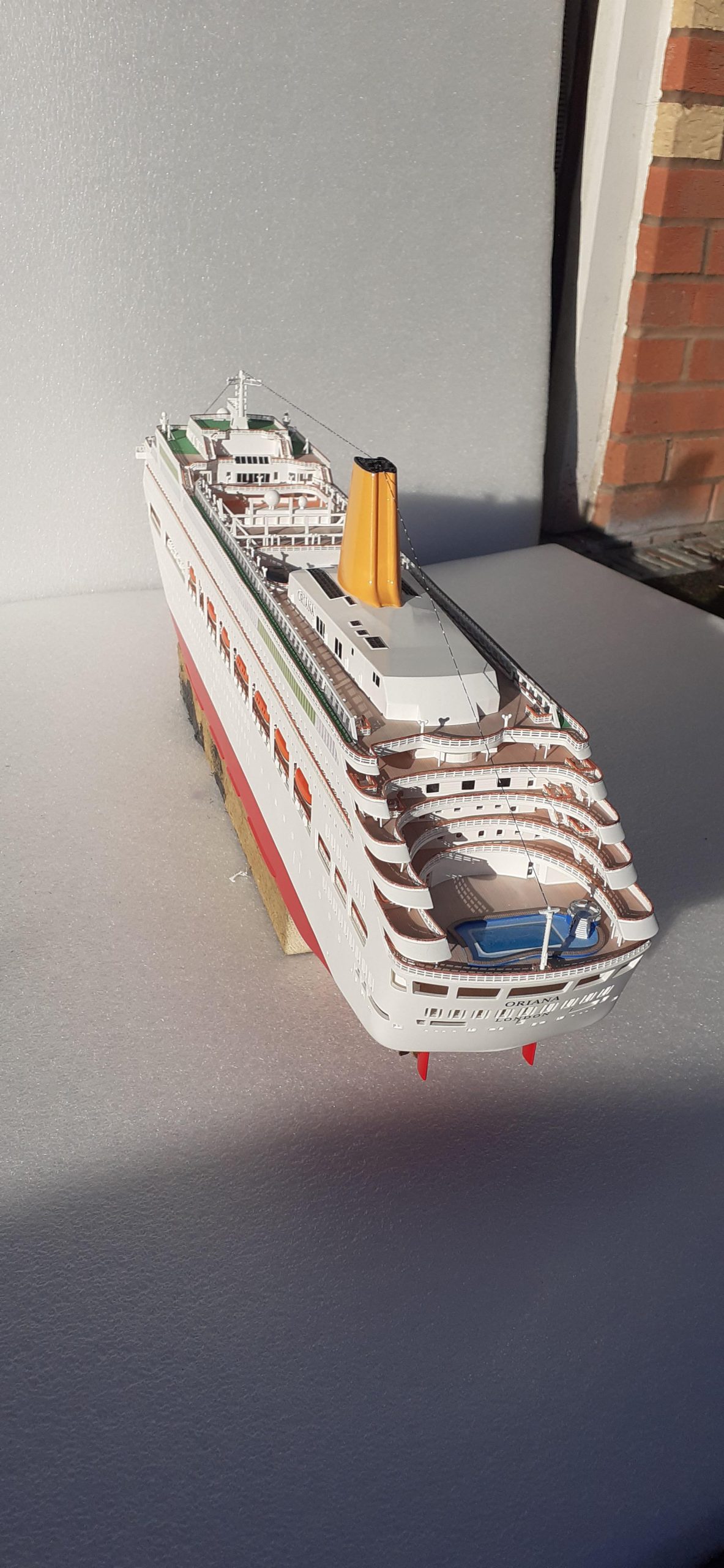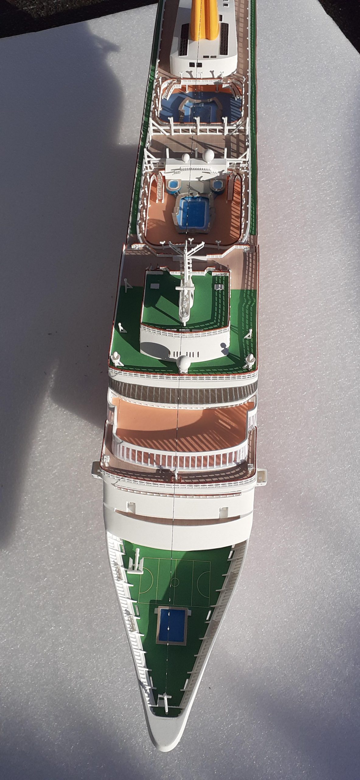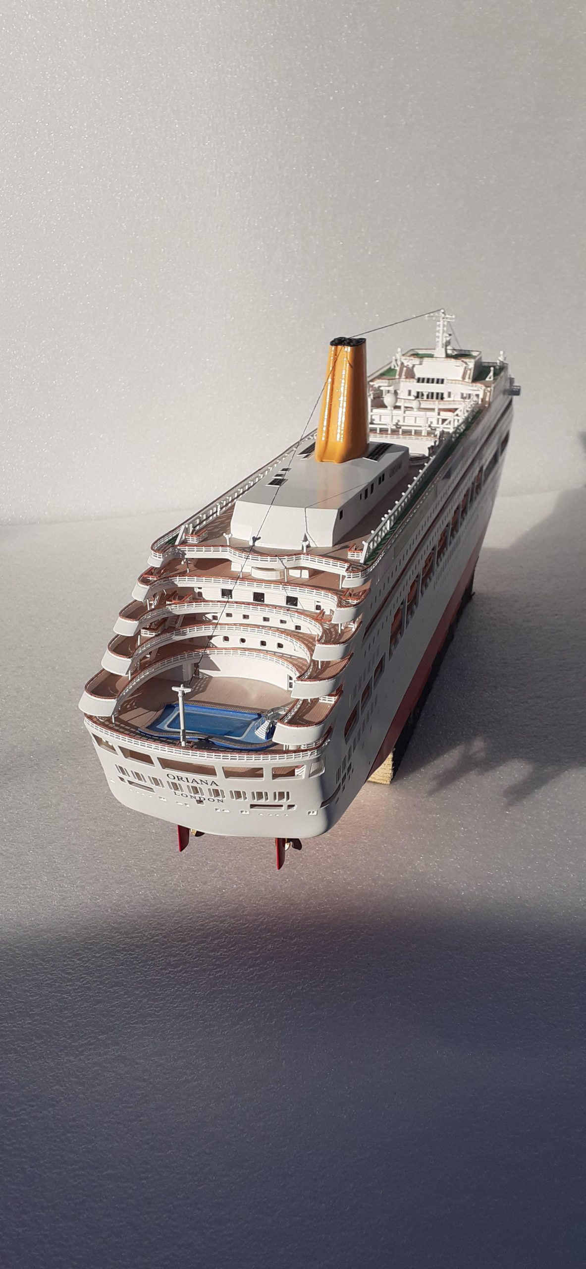 This impressive model spans 106 cm in length, 14 cm in width, and 31 cm in height, capturing the intricate details that make the Oriana a true gem for maritime enthusiasts. Ideal for those who appreciate classic liners, this model is a tribute to the elegance of mid-century ocean travel.