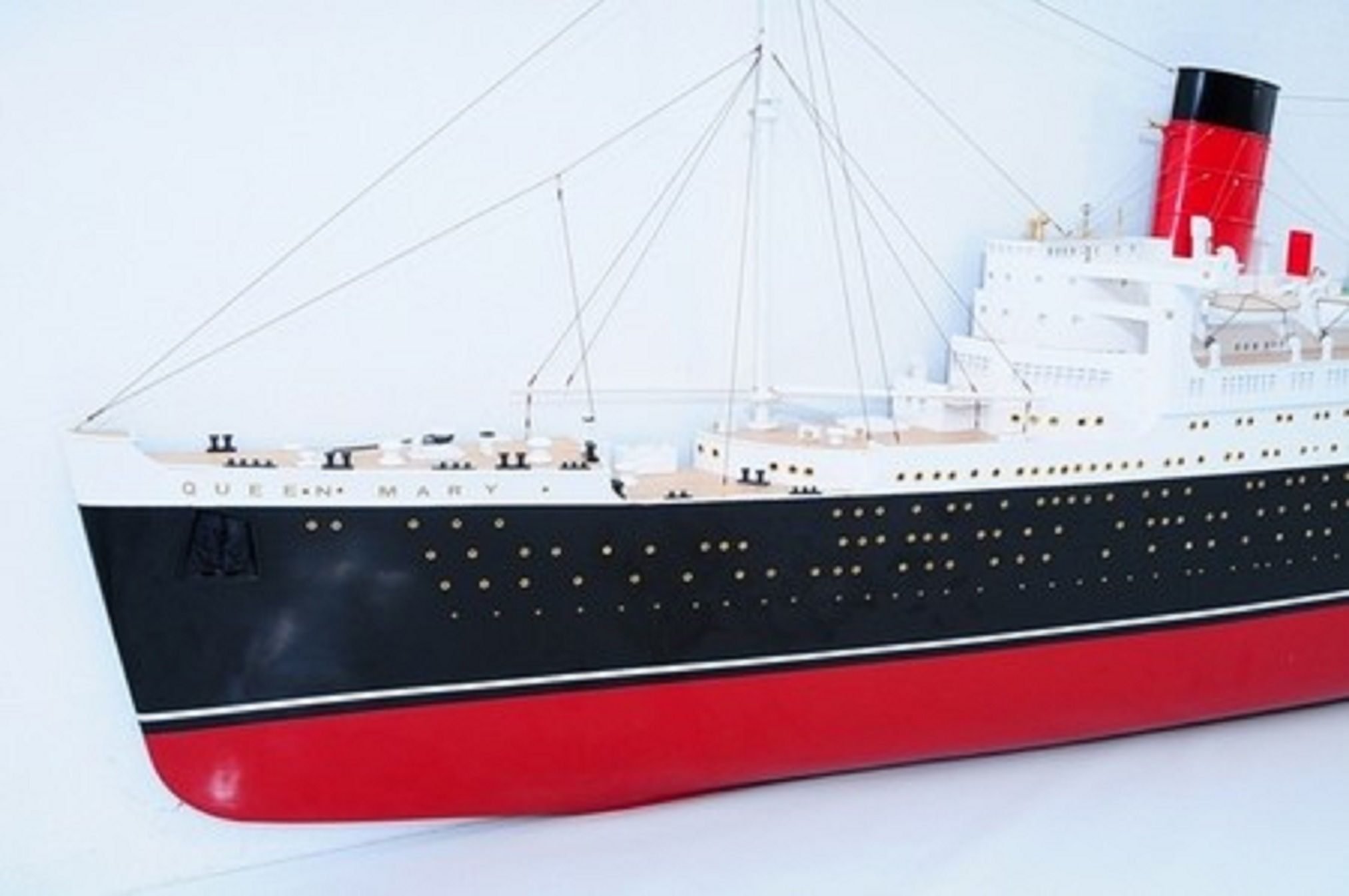 Queen Mary half model represents our unique custom made range at Premier Ship Models. This exceptional half model of RMS Queen Mary features a breathtaking length of almost 4 metres (13 feett)! This particular ship model was commissioned by an interior design company for a  new cruise liner and up till now, it is our longest ever half model we have built. This and other custom made models at Premier Ship Models are made by master craftsmen with great eye for the model design and its quality.