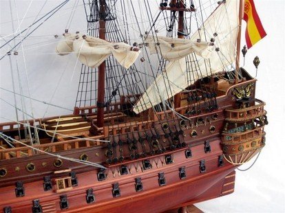 Because of this, the ‘San Felipe’ was used to carry enormous wealth from the Spanish conquests of South America and the Caribbean, in addition to protecting their territories. Unfortunately the ‘San Felipe’ came to an end in 1705, whilst fighting a protracted battle at enormous odds of approximately 36 English ships to a Spanish Fleet of 12. The ‘San Felipe’ was eventually captured by the British, but suffered so much damage that she sank to the bottom of the Sea with all her precious cargo.