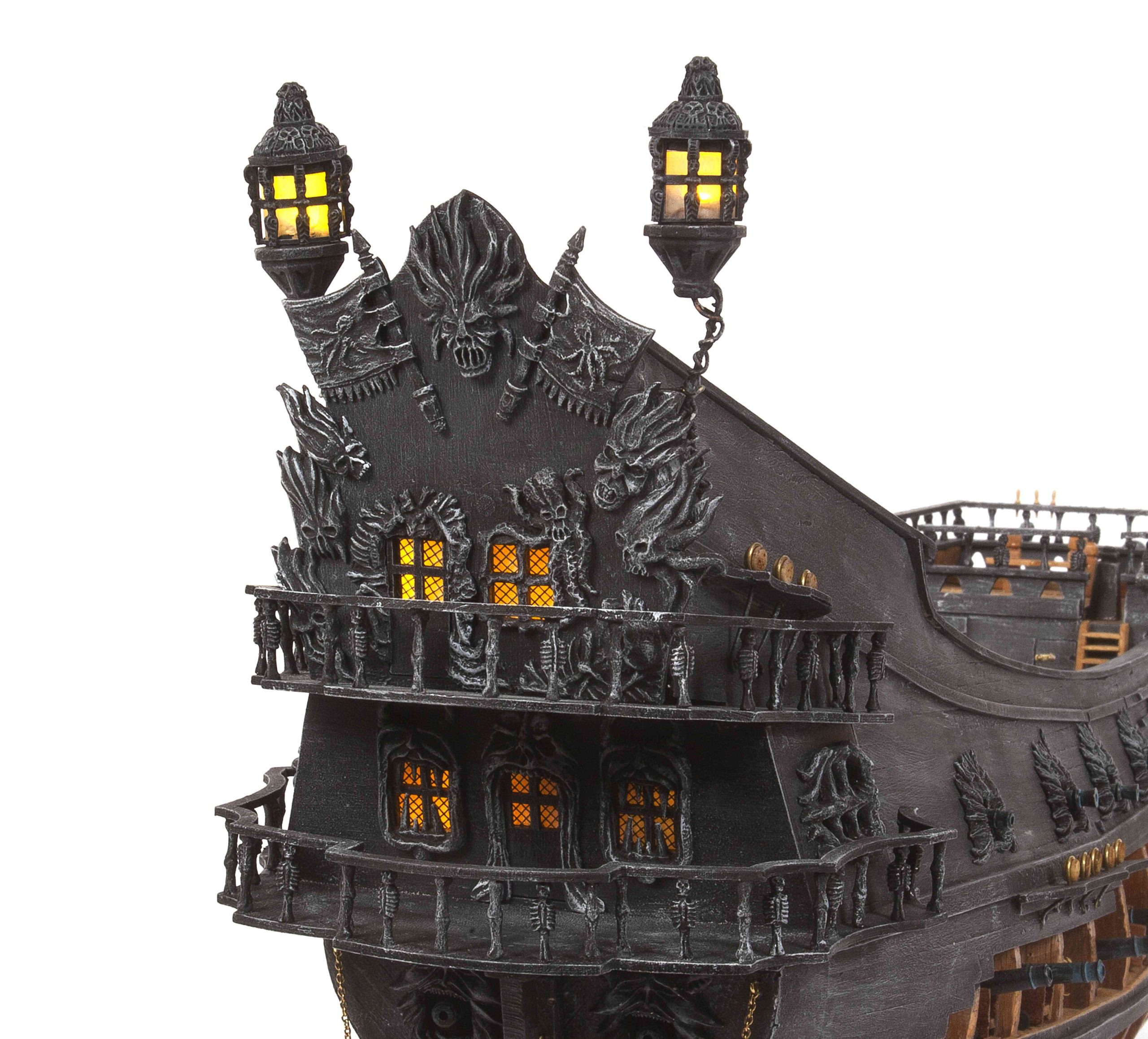 This fantastic model is an excellent representation of the infamous Flying Dutchman. It’s complete with an open hull full of extraordinary details, as well as an exclusive exhibition stand and even a custom die cast plate that includes tentacles.