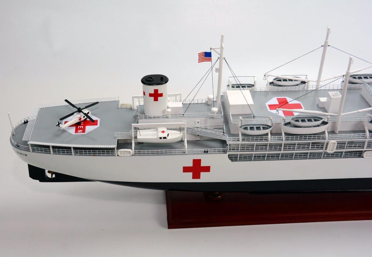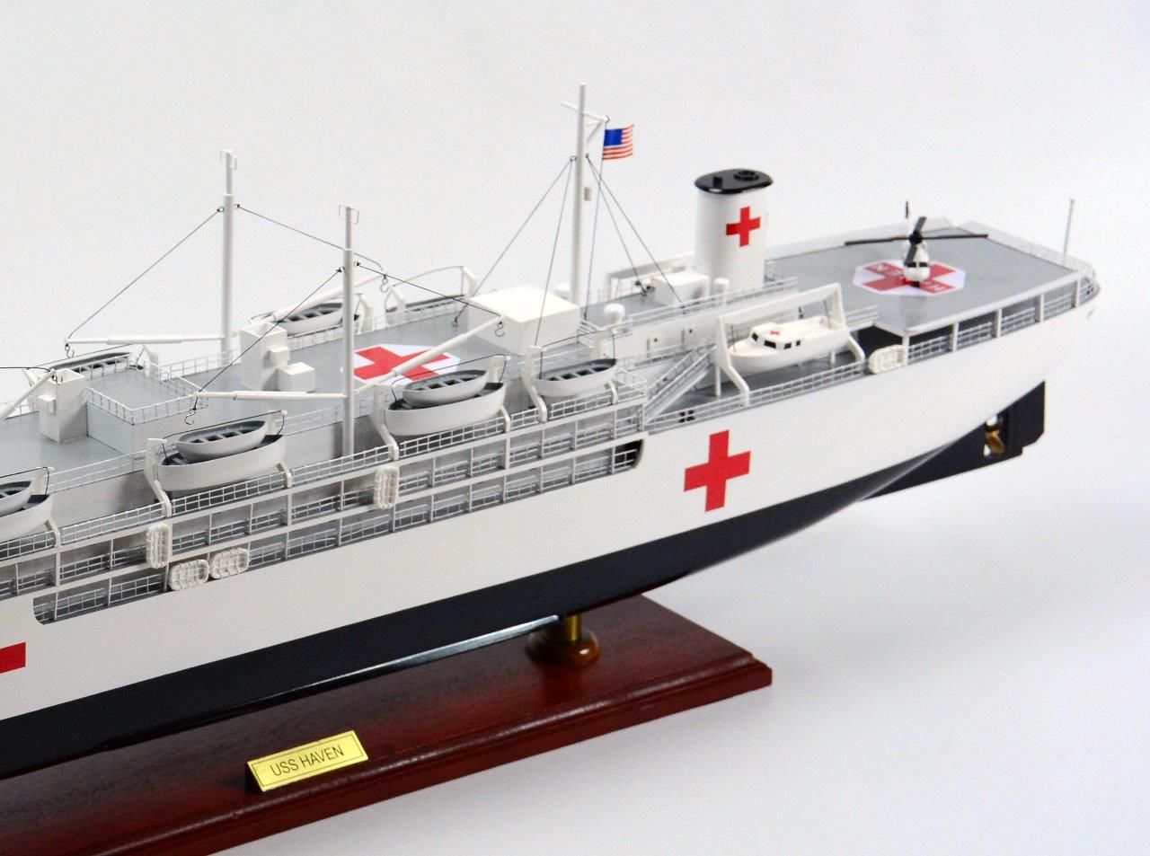 The USS Haven Ship model is part of wide range of magnificent models from Ghia Nein offered at Premier Ship Models. Ghia Nein are renowned for their craftsmanship. An artisanal business with over twenty years experience, using locally sourced exotic woods and resources to produce exquisite hand crafted models. Based in Vietnam this family artisanal workshop ensures that each model is of high quality and are accurate replicas of original ships. Â Get this wonderful model of the USS Haven Ship today, to sit proudly as feature in any room.