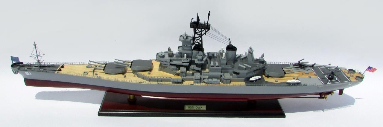 The USS Iowa Ship model is part of wide range of magnificent models from Ghia Nein offered at Premier Ship Models. Ghia Nein are renowned for their craftsmanship. An artisanal business with over twenty years experience, using locally sourced exotic woods and resources to produce exquisite hand crafted models. Based in Vietnam this family artisanal workshop ensures that each model is of high quality and are accurate replicas of original ships. Â Get this wonderful model of the USS Iowa Ship today, to sit proudly as feature in any room.