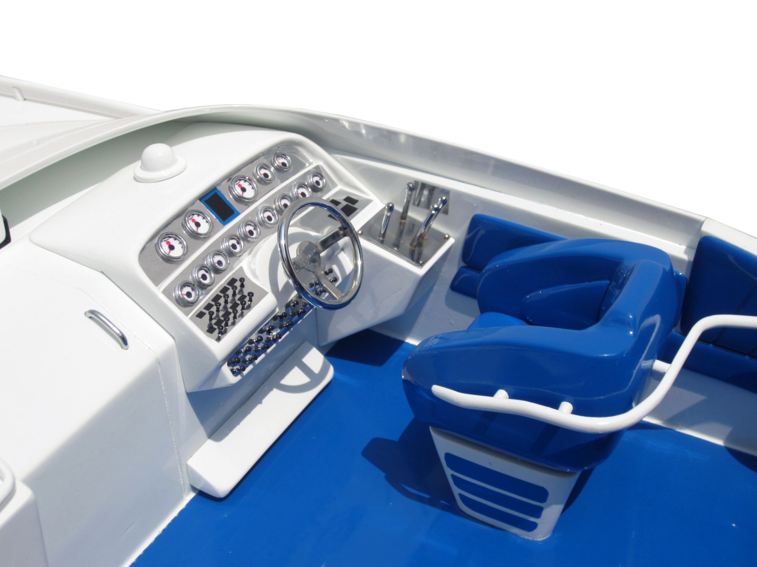 This Wellcraft Scarab model is mounted on a solid black to match the aesthetic of the yacht and would make a stunning addition to any space.